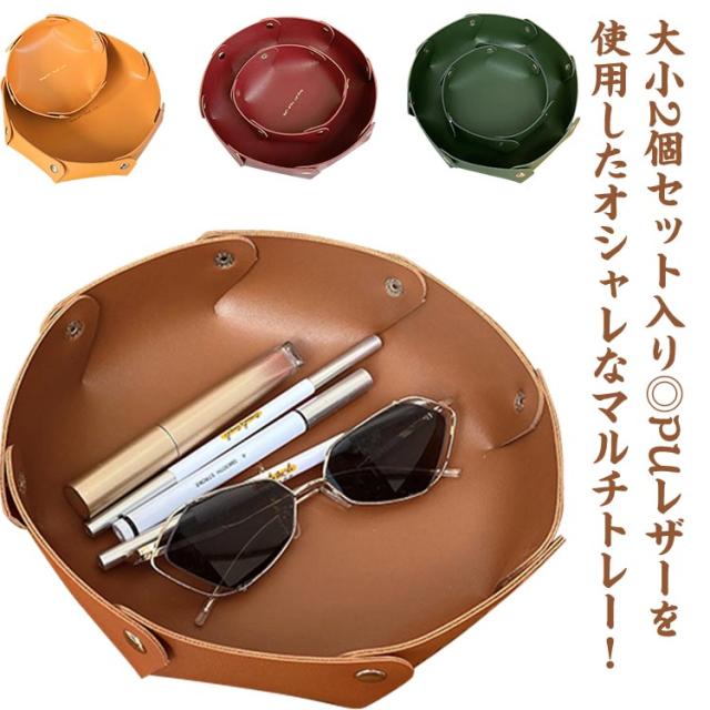 大小2個セット レザートレイ 小物トレイ アクセサリー 収納 小物入れ インテリア 雑貨 小物収納 アクセサリートレイ アクセサリートレー 携帯 機能的 かわいい PUレザー マルチトレー 丸形 整理整頓 ジュエリーケース おしゃれ 鍵入れ ギフト プレゼント