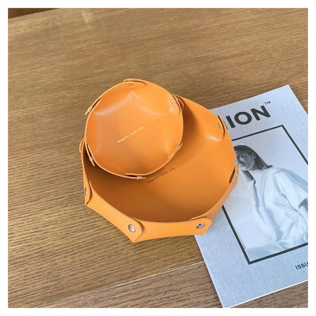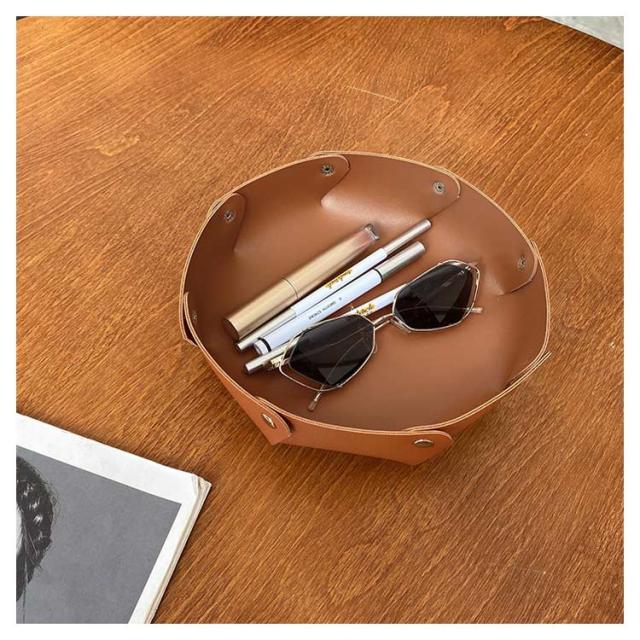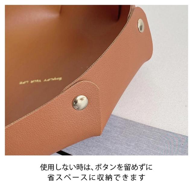 | おしゃれな英文字ロゴが入ったレザートレイ! 玄関の棚や卓上など、どこでも置ける手頃なサイズです。 化粧品やアクセサリー、鍵やリモコンなど、小物収納に必ず大活躍。 スナップボタンを外せば完全にフラットに。使わない時は、重ねて収納できるので、かさばりません。 カバンに入れて持ち運びも便利なので、旅行先でも大活躍。 用途に合わせて使い分けできる大小2個セットでお届け♪ | |