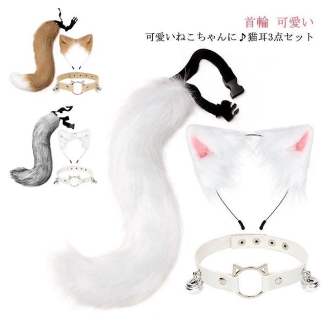 猫耳 3点セット コスプレ 首輪 首飾り ヘアピン しっぽ 大人用 子供用 カチューシャ チョーカー 衣装 仮装 セクシー ネコミミ ねこみみ ねこ耳 尻尾 にくきゅう ホワイト ブラック 白猫 黒猫 猫耳カチューシャ つけ耳 つけ尻尾 文化祭 学園祭 パーティー