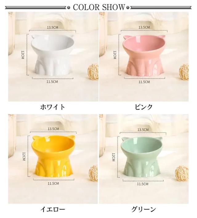 | 陶器製のフードボウルため重さがあり、倒れにくく安定しています。 元気いっぱいにエサを食べる猫ちゃんにも安心してご使用いただけます! ボウルは丸洗い出来て、いつでも清潔に気持ちよく!食器用洗剤で洗えて、お手入れ簡単です。 猫ちゃんやワンちゃんがエサを食べやすいように、傾き度15度のデザイン、食物が自然に集まり、小さなわんちゃん、ねこちゃんも食べやすいようになります、食器を高く設置することで食事中の首や腰の負担を軽減し、食事をより楽々になります。 | |