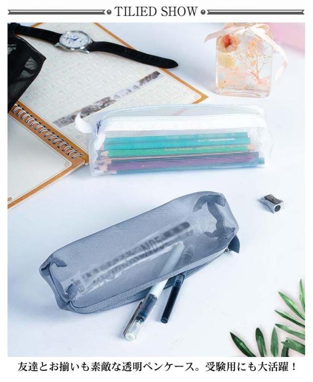 透明ペンケース メッシュ ペンケース 透明 大容量 クリアペンケース かわいい シンプル クリア ペンポーチ 透明 筆箱 薄型 中学生 大学生 高校生 女子 男子 小学校受験 中学校受験 社会人 韓国 学生 小物入れ 無地 入学祝い 送料無料