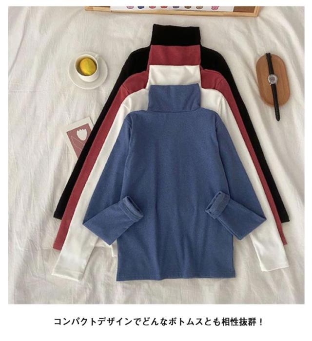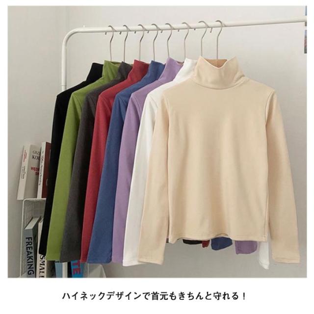裏起毛 ハイネック 長袖 トップス Tシャツ カットソー あったか 可愛い 厚手 シンプル カジュアル きれいめ 秋冬 防寒 無地 レディース 大きいサイズ 冷え取り お洒落 送料無料
