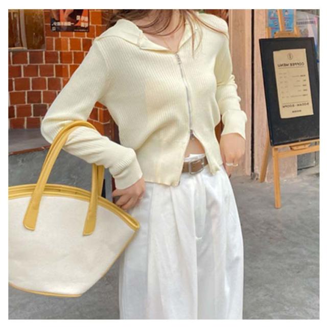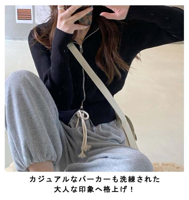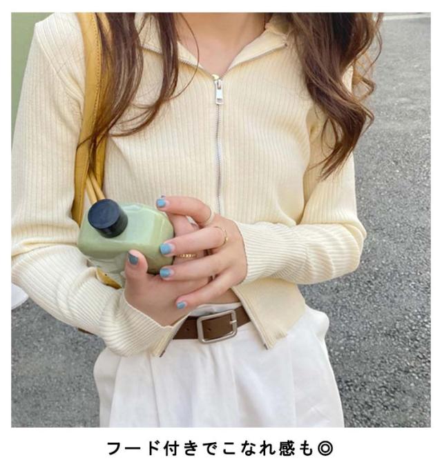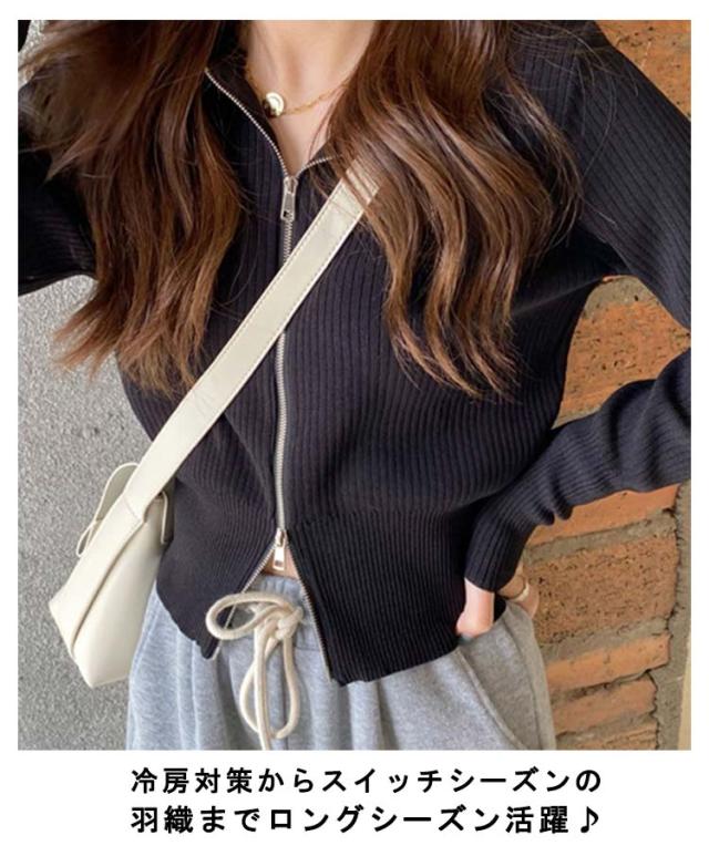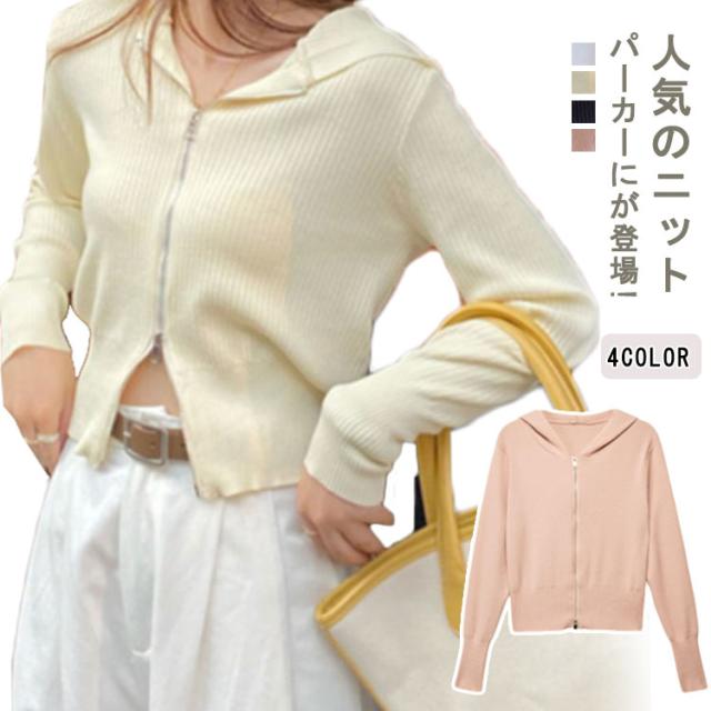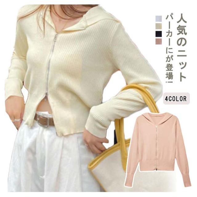 送料無料 ニットパーカー ショート丈 ダブルジップ 秋 ジップアップ アウター 長袖 羽織り パーカー フード 春 ジップアップ UVカット カーディガンンン 冷房対策 トップス ニット レディース 無地 シンプル 日焼け防止