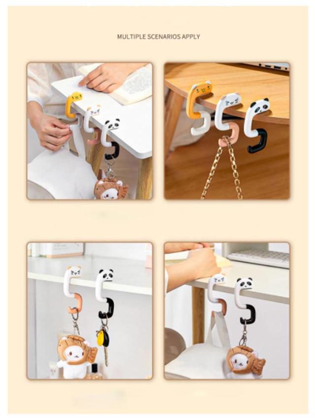 2個セット バッグハンガー バッグフック バッグホルダー 耐荷重15kg カバン掛け 机に引っかける フック 送料無料 可愛い パンダ 猫 オフィス ギフト 贈り物