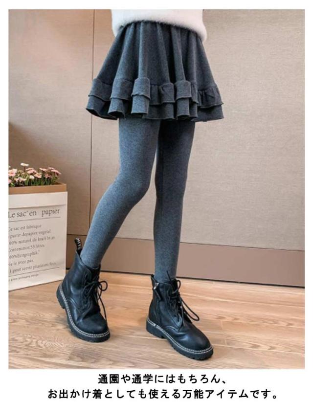 キッズ スカート付きレギンス 裏起毛 厚手 レギンス スカート付き ストレンチ フレア Aライン スカート 一体型 子供服 女の子 秋冬 防寒 保温 あたっか 100 110 120 130 140 150 160 可愛い 無地 通学 学生 【送料無料】