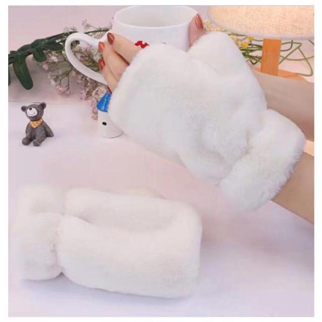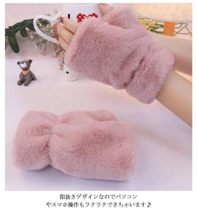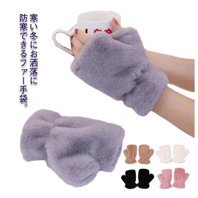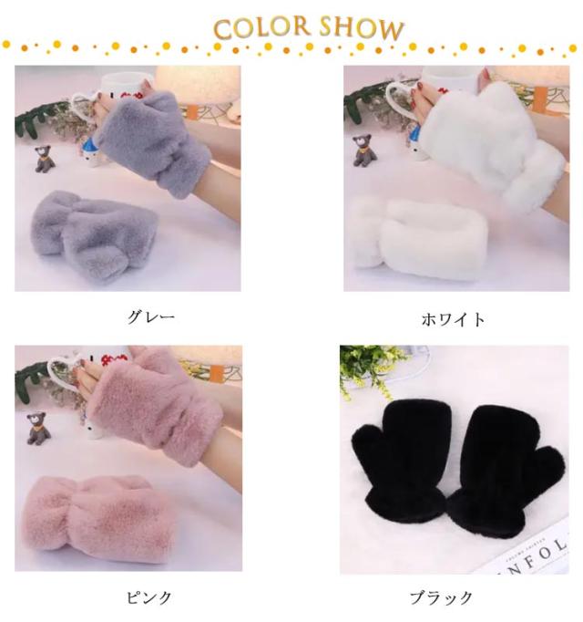 ファー手袋 ふわふわ グローブ 指なし 手袋 ハンドウォーマー フィンガーレス てぶくろ 寒さ対策 もこもこ 指切り 送料無料 モノトーン フェイクファー