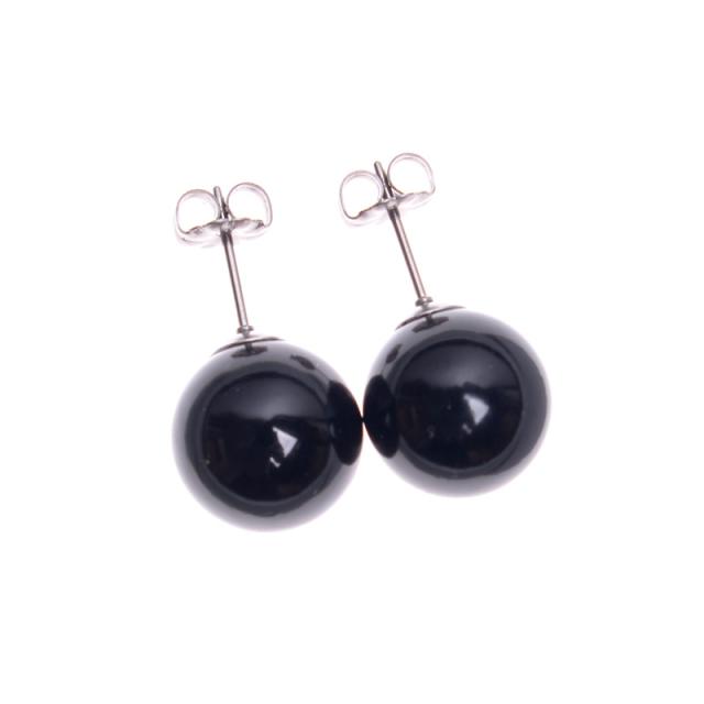 【仕様】天然ジェット12mm珠 チタンポストピアス・チタン製キャッチ