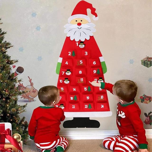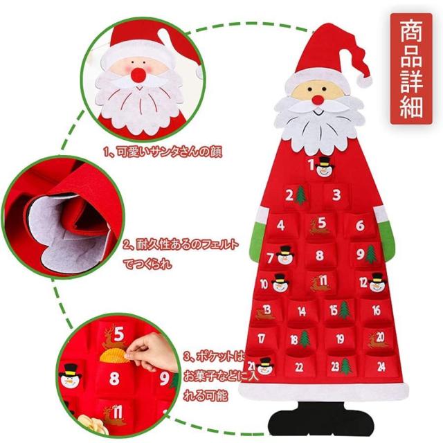 クリスマス アドベントカレンダー 24日間 壁掛け クリスマス 飾り クリスマスツリー タペストリー 飾り付け お菓子入れ 玄関 ドア デコレーション