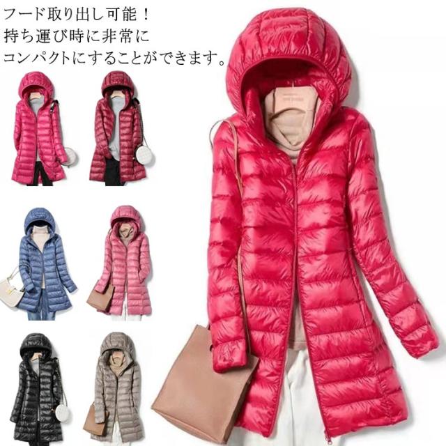 ダウンコート ロングダウンコート ダウンジャケット レディース 軽量 ロング丈コート ダウン ロング丈 アウター ロングダウン ライトダウンコート コート 着痩せ 暖かい 秋冬 撥水 羽織り 防寒 保温 大きいサイズ フード取り出し可能