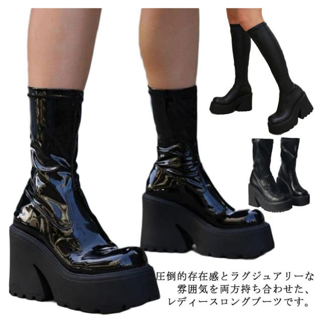 ストレッチブーツ レディース 厚底ブーツ ロングブーツ ミドルブーツ ショートブーツ 10cmヒール 歩きやすい 痛くない 履きやすい 大きいサイズ ブーツ ロング 厚底 美脚 細身 ストレッチ ハイヒール 太ヒー