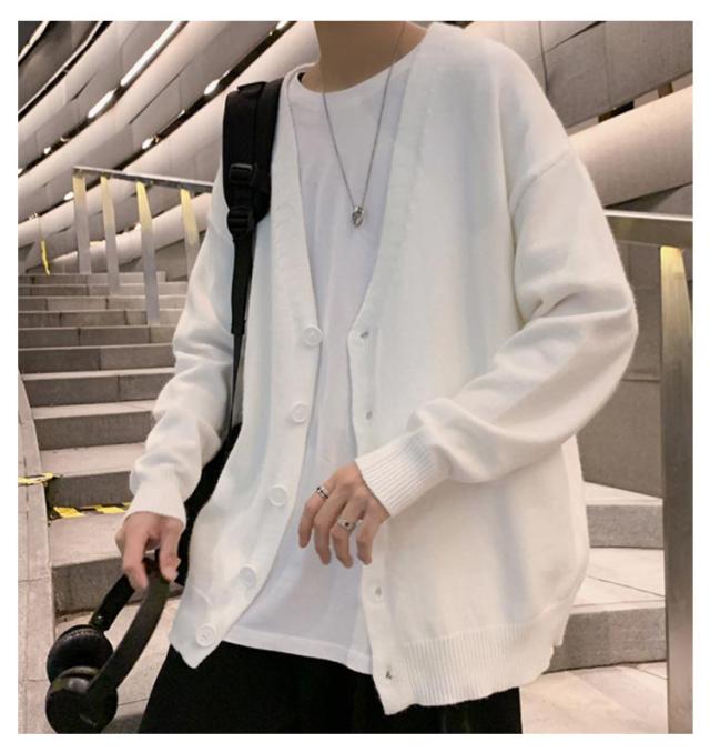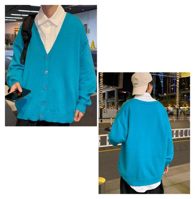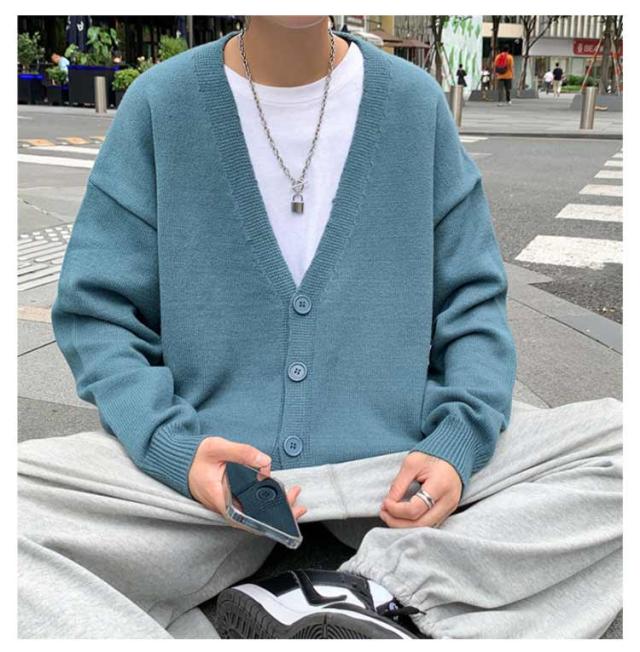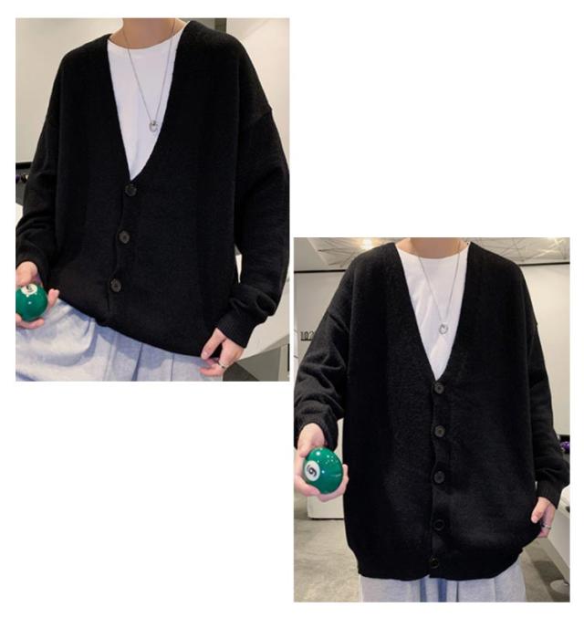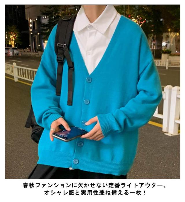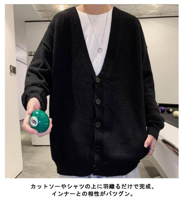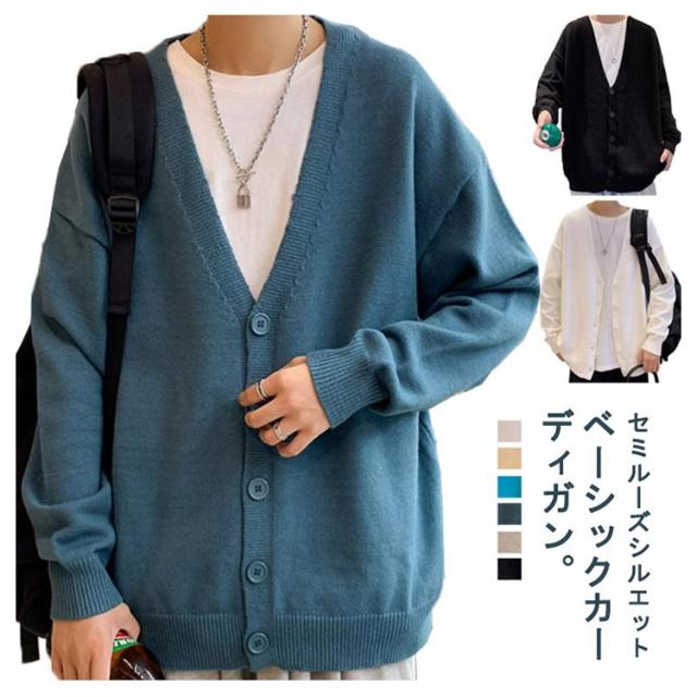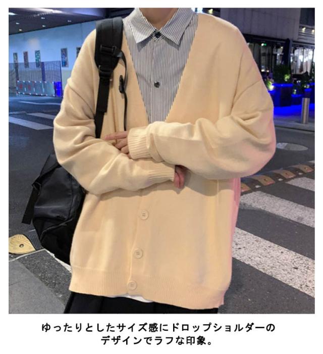 ニットカーディガン メンズ カーデ オーバーサイズ カーディガン 秋服 Vネック スクールカーディガン ボタン付き アウター 春 秋 ボタンカーディガン 無地 ドロップショルダー 男性 コーディガン 暖かい お洒落 カジュアル 男女兼用 長袖