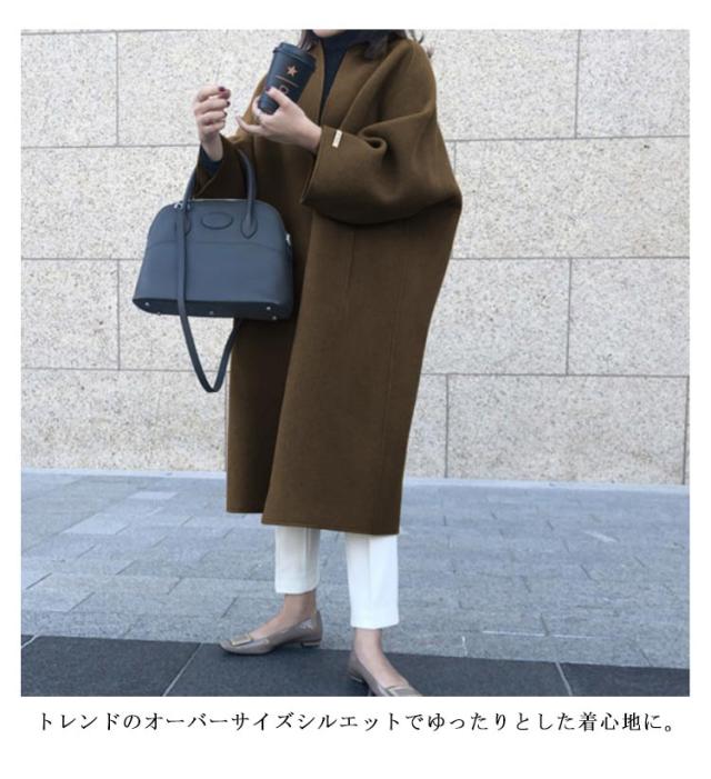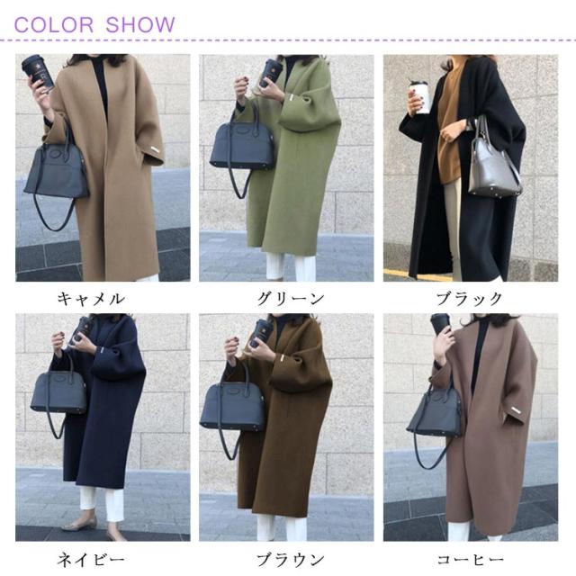 6色 チェスターコート レディース 秋冬 ロングコート チェスターロングコート 韓国 BIGコート コート アウター ノーカラー チェスター ロング丈 ゆったり 体型カバー 大人 上品 オフィス きれいめ