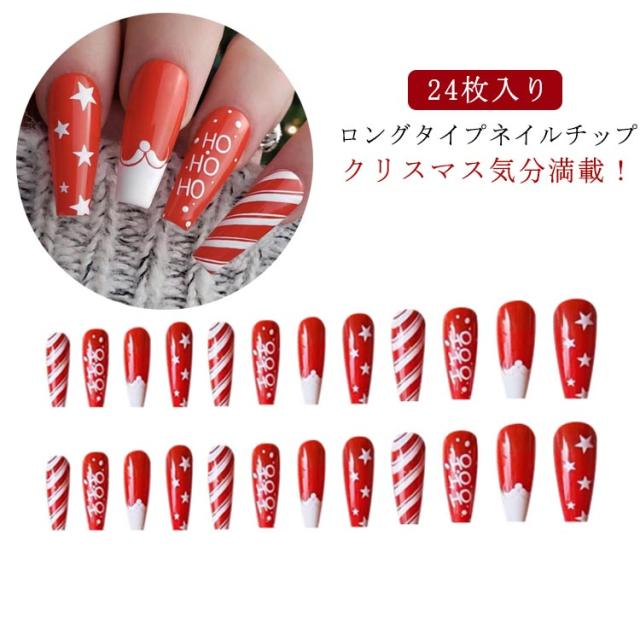 ロング ネイルチップ ロングバレリーナ バレリーナ ネイル スクエア ネイルチップ つけ爪 クリスマス 24枚入り ジェルネイルチップ 付け爪 ロング ジェルネイル ネイルチップ アートチップ ウィンターネイルチップ パーティー 送料無料