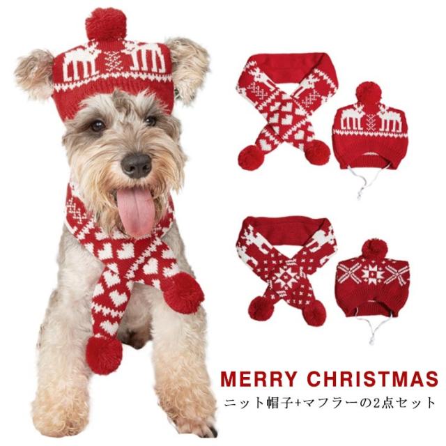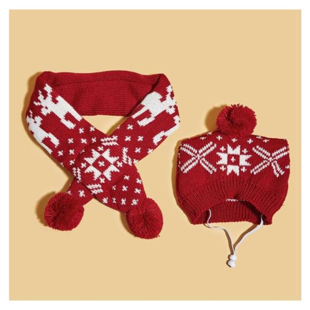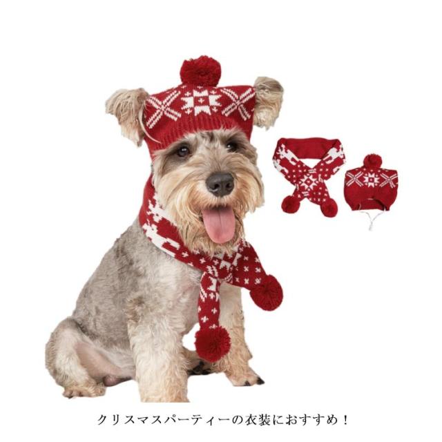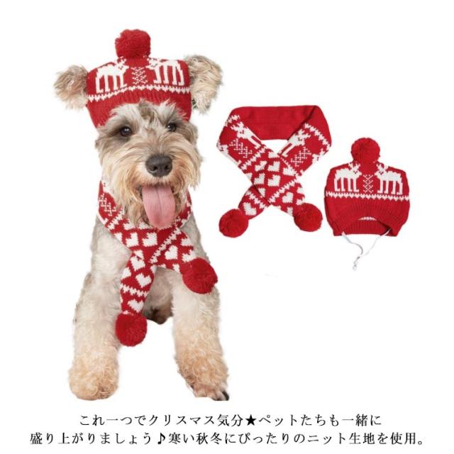 トナカイ ニット帽子 ニットマフラー 2点セット 犬 猫 ペット クリスマス コスチューム トナカイ 雪の結晶 ニット 帽子 犬用 猫用 ニットマフラー ペット用 犬用 ペット帽子 犬 猫 帽子 ハット かぶりもの ペット ペットコスチューム 送料無料