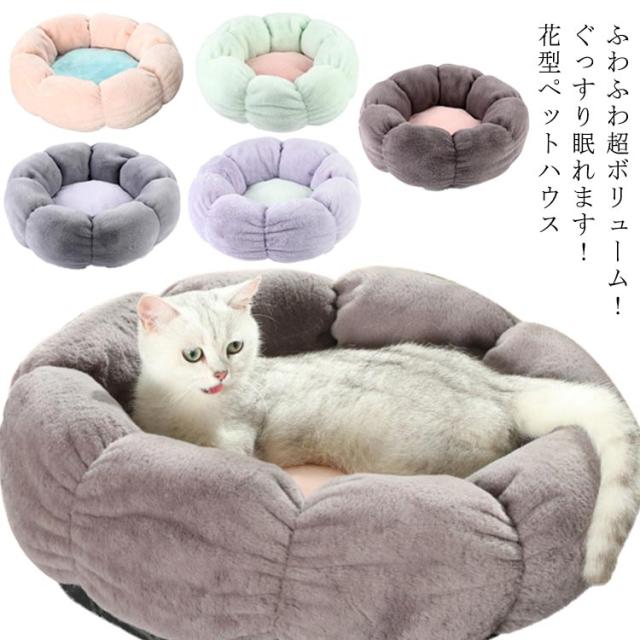 直径50CM ペットハウス 丸型 花型 ペットベッド 犬ベッド 猫ベッド 犬ハウス ネコベッド クーション 洗える 犬用ベッド 猫用ベッド 猫ハウス クッション 犬猫寝具 ハウス 寝床 冬 ふわふわ 寝床 滑り止め 送料無料