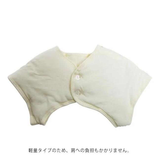 | 赤ちゃんからお子さんの就寝時に肩を温めてくれる肩サポーターです 肌触りの良いさらっとしたコットン生地は驚くほど暖かいです どんなに寝相が悪いお子さんでもこれなら安心! 就寝時の冷房対策や真冬の冷え対策にばっちり! 軽量タイプのため、肩への負担もかかりません。 ご自宅の部屋着のインナーにもお使い頂くことも可能です。 出産祝い用にもプレゼントにもピッタリですね。 | |