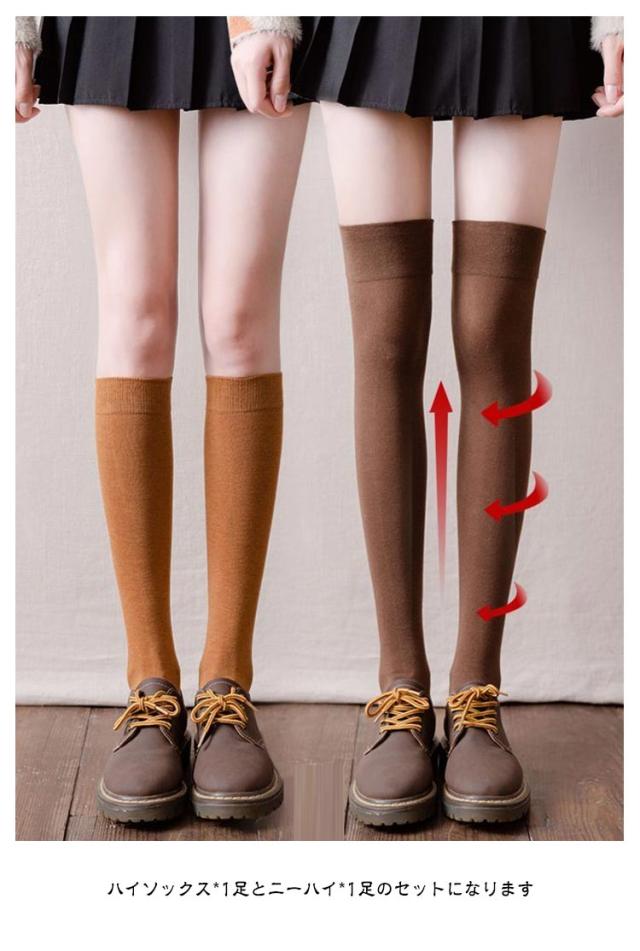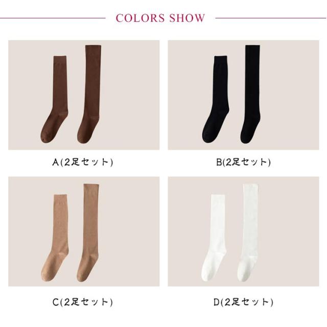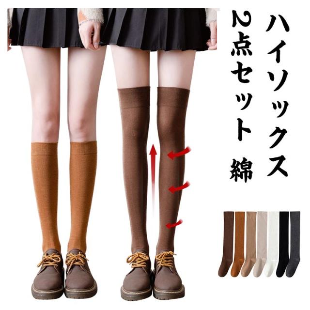 ハイソックス 2足セット ニーハイソックス 靴下 無地 ソックス ニーハイソックス リブ 送料無料 綿 ロング ロングソックス ルームソックス 暖かい 冷え対策 大人 中学生 レディース 保温 秋冬 膝上 バレンタインデー プレゼント