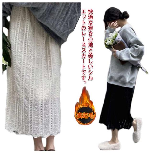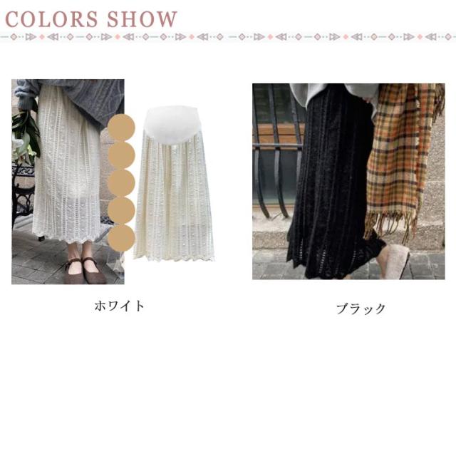 透かし編み マタニティスカート レーススカート Aライン スカート ロングスカート 裏起毛 大人 可愛い お呼ばれ 美脚 アジャスター付き エレガント フェミニン M L XL 2XL