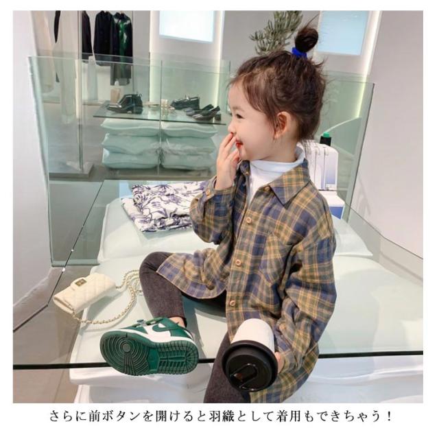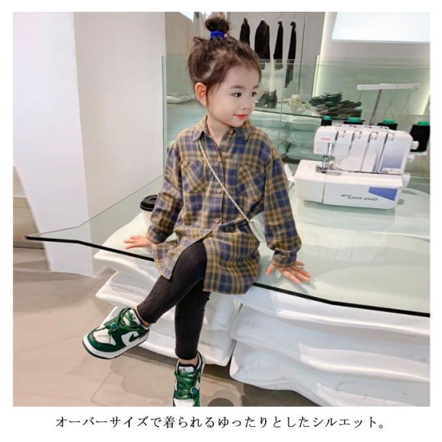 シャツワンピース キッズ ネルシャツ チェック柄 ブラウス 長袖 チュニック ロング カジュアルシャツ 前後差 子供服 女の子 ゆったり 秋冬 羽織り 薄手 通学 小学生 100 110 120 130 140 150 160 可愛い 【送料無料】