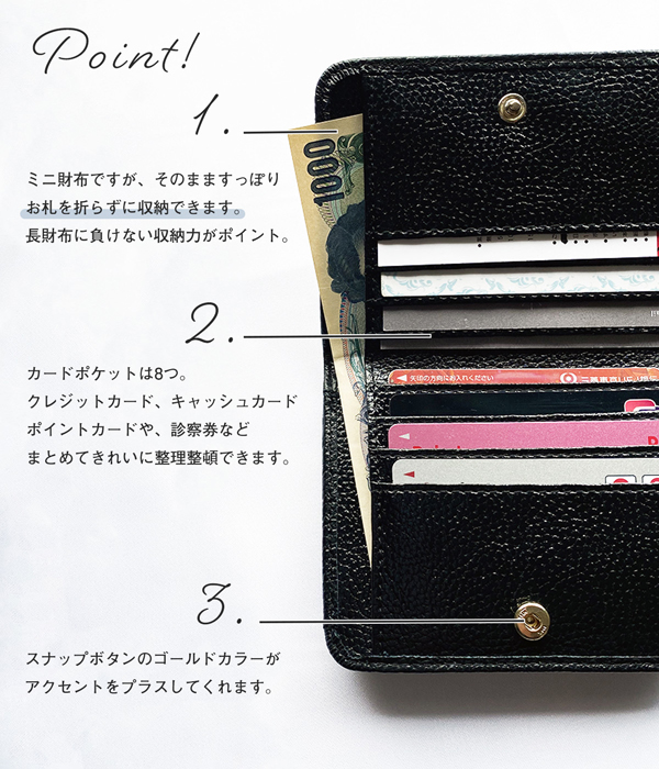 ぱかっと開いて見やすく、取り出しやすいのでレジ前でもたつくこともありません。