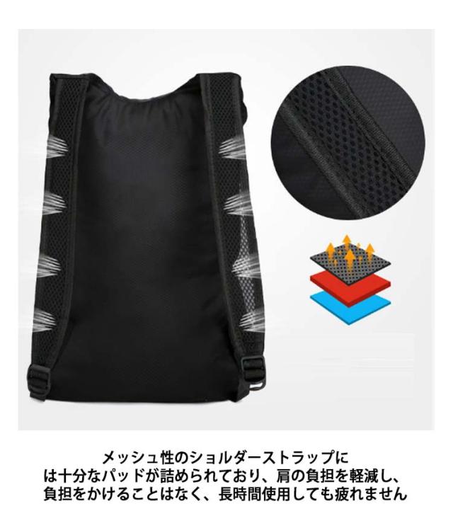 | コンパクトに持ち運べる折り畳みリュックです 旅行、ショッピング、アウトドア、ビジネス、防災バッグなど様々なシーンで使えるバッグパックです。 コンパクトサイズに折りたたむことができますので、常時持ち歩くサブバックとしても大活躍します。 軽量で防水性・耐摩耗性が高い生地を使用しております メッシュ性のショルダーストラップには十分なパッドが詰められており、肩の負担を軽減し、負担をかけることはなく、長時間使用しても疲れません | |