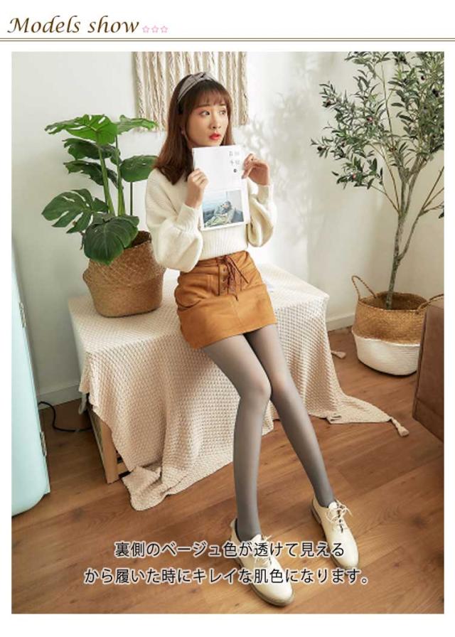 | 就活、通勤、デートの様々なシーンまで活用できる裏起毛タイツ。 裏側のベージュ色が透けて見えるから履いた時にキレイな肌色になります。 なめらかな肌触り、ふわふわ裏起毛で冬の寒さに一枚で対抗! 伸縮性が良くて履き心地抜群♪しっかりとしたフィット感と動きやすさを実現します。 しっかり脚からお尻にフィットするので、細身で繊細なスタイルを引き出してくれます。 | |