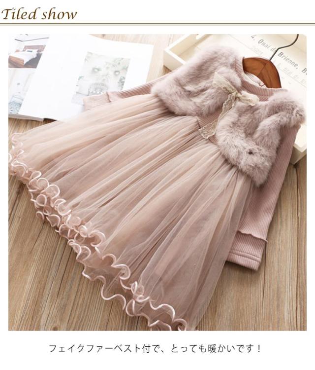 韓国子供服 子どもドレス 子供 ドレス ワンピース チュール 秋冬 裏起毛 子供服 子ども服 ファー ファイクファー ファスナー ふんわり あったか クリスマス ピアノ 発表会 結婚式 入学式 入園式 卒業式 卒園式 七五三