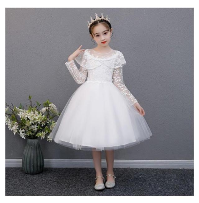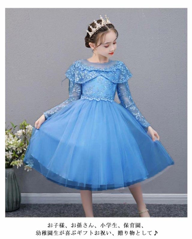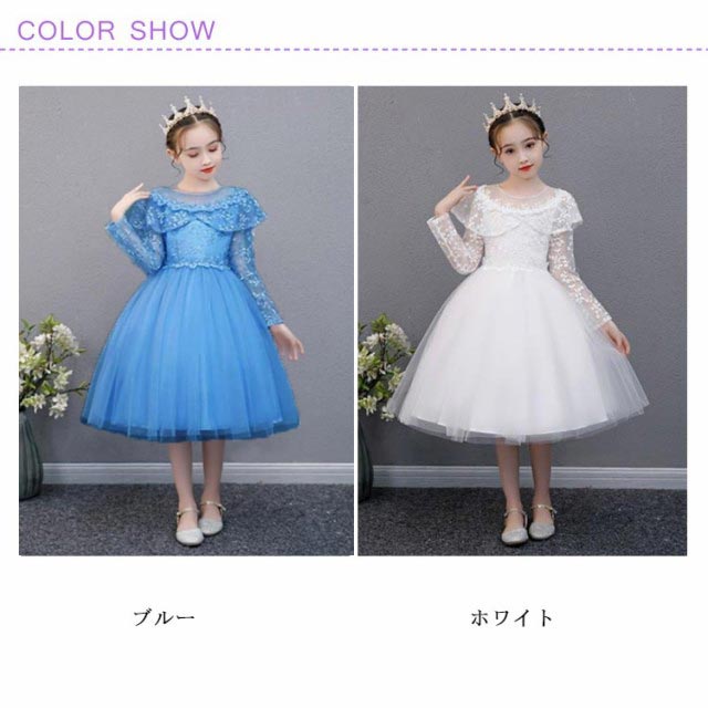 ドレス 子供 ピアノ発表会 子どもドレス ブルー 子供ドレス 長袖 白 ホワイト ブルー 110cm 120cm 130cm 140cm 150cm 160cm 発表会ドレス ファスナー 結婚式 キッズ フォーマルドレス 子どもドレス