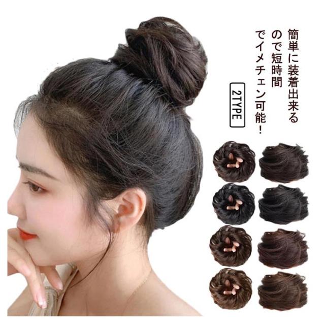 お団子ウィッグ シュシュ おしゃれ 可愛い ポイントウィッグ パーティー 結婚式 二次会 七五三 成人式 着物 浴衣 普段使い ウィッグ レディース ボリューム 装着簡単 自然 髪飾り 送料無料