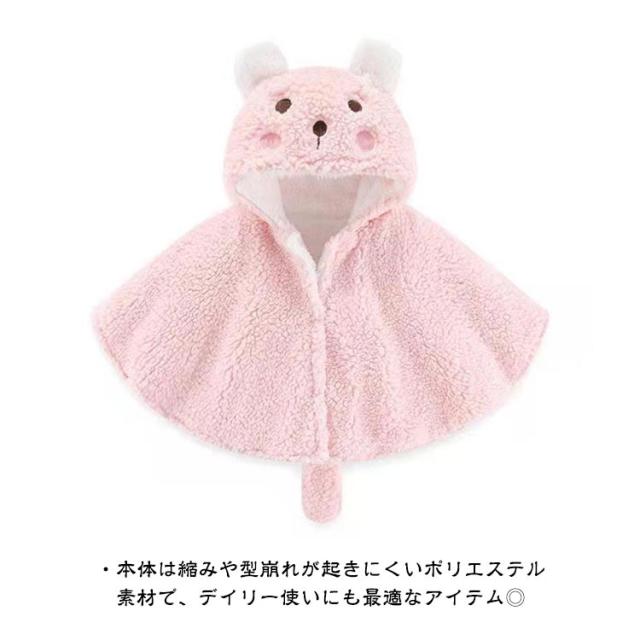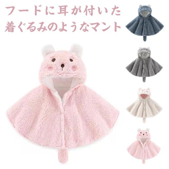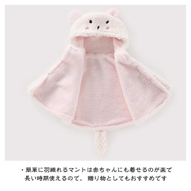 ベビーマント ベビー フード付きマント ポンチョ 赤ちゃん 着ぐるみ 前開き 耳付き しっぽ付き 前ボタン 柔らかい 子供服 女の子 男の子 可愛い 防寒着 誕生日 全4色