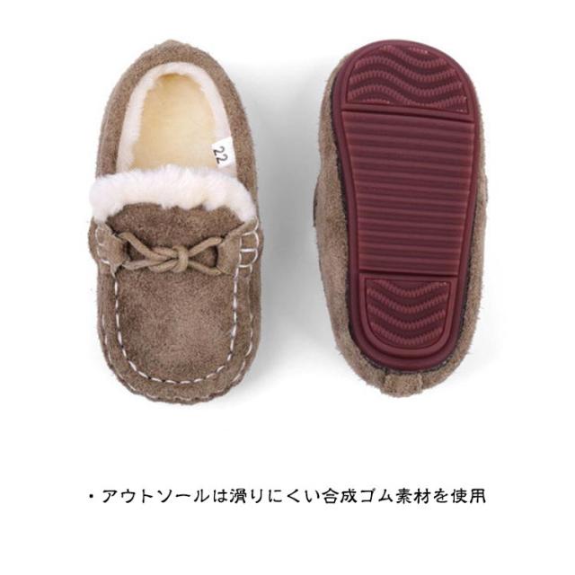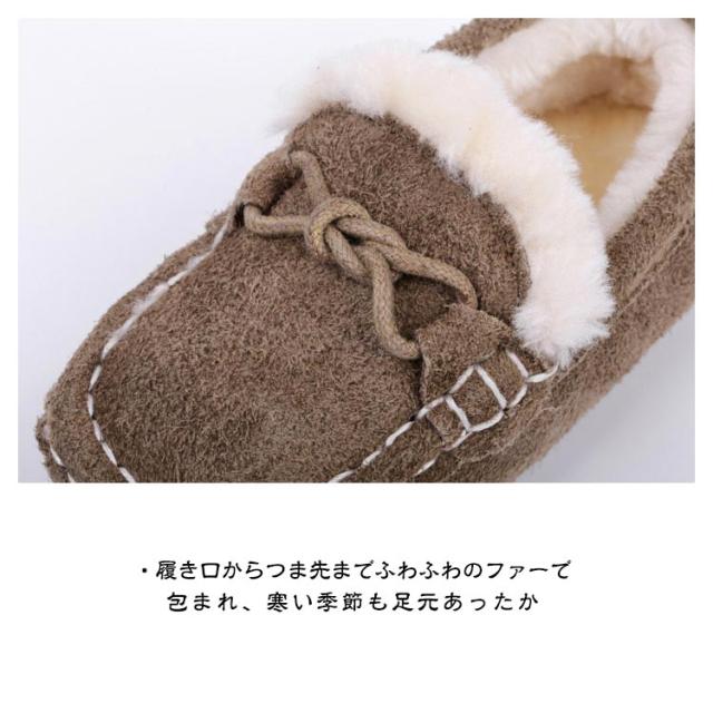 キッズ モカシン リボンモカシンシューズ 裏ボア 子供 靴 エコファー スリッポン 歩きやすい 履きやすい ぺたんこ 滑りにくい 柔らか 保温 防寒 屈曲性 あったか 女の子 男の子 選べる2タイプ 冬 全11色