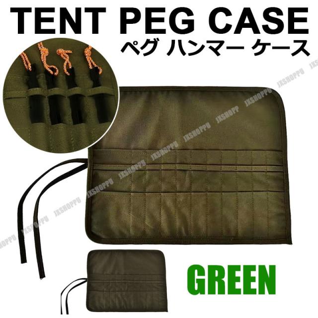 頑丈 帆布製 ペグケース [グリーン] ペグハンマー 収納袋 ケース 筆入れ ペグ キャンプ アウトドア テント BBQ レジャー グッズ 送料無料 収納 ケース 布製 破れにくい タフ ペグ ハンマー 道具 整頓 厚手 厚い 工具入れ 車 汎用 便利 バイク 整備 車載 コンパクト 小型 軽量