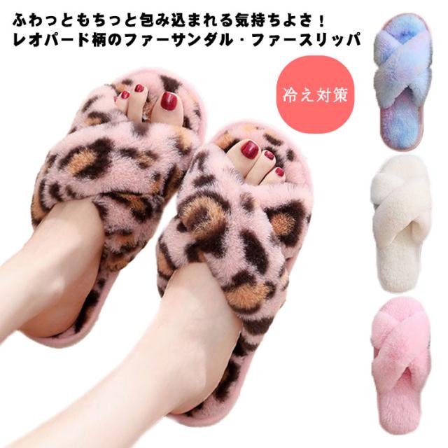 ヒョウ柄 ファースリッパ ファーサンダル レディース 靴 ルームシューズ ルームサンダル 秋冬 シューズ スリッパ フェイクファー もこもこ レオパード 柄 かわいい 室内スリッパ 暖かい ふわふわ 防寒