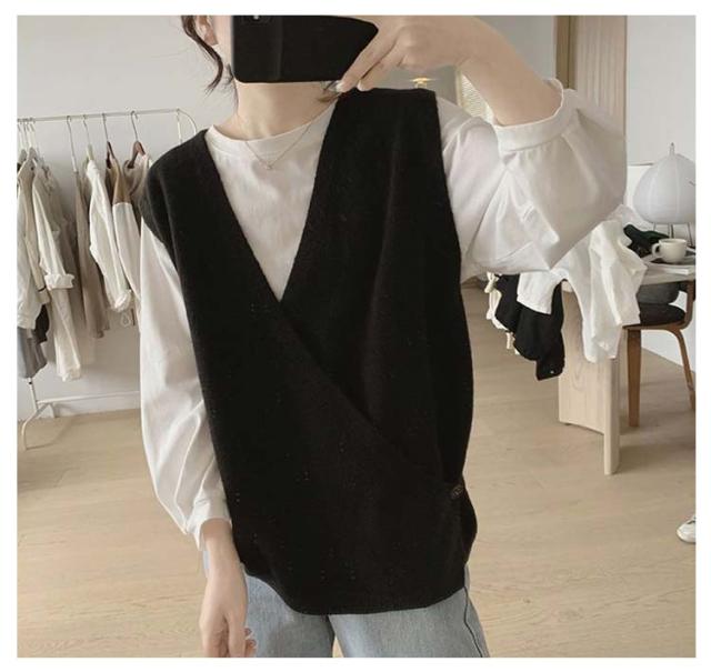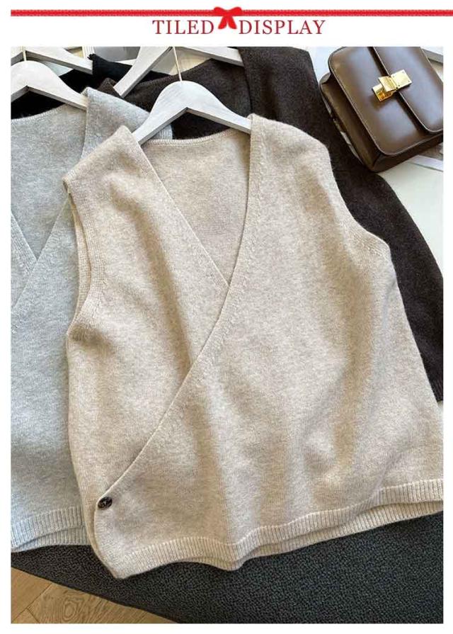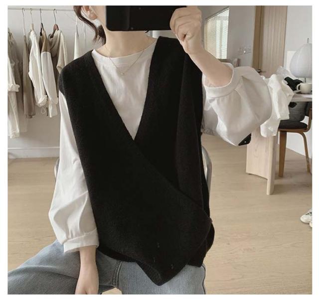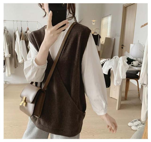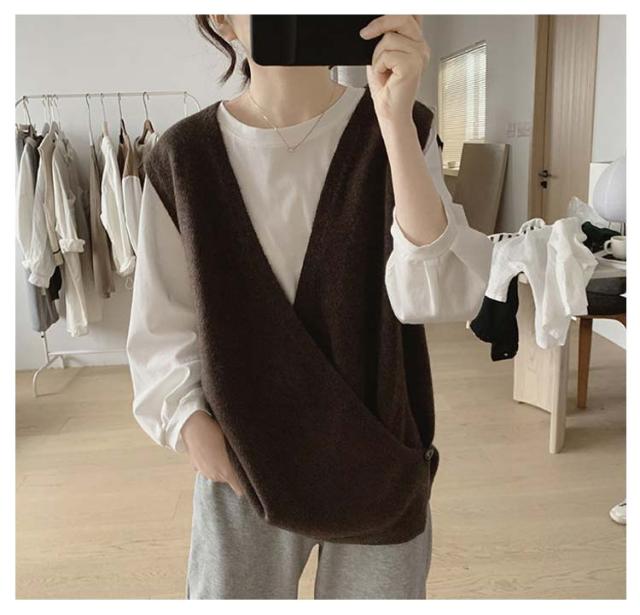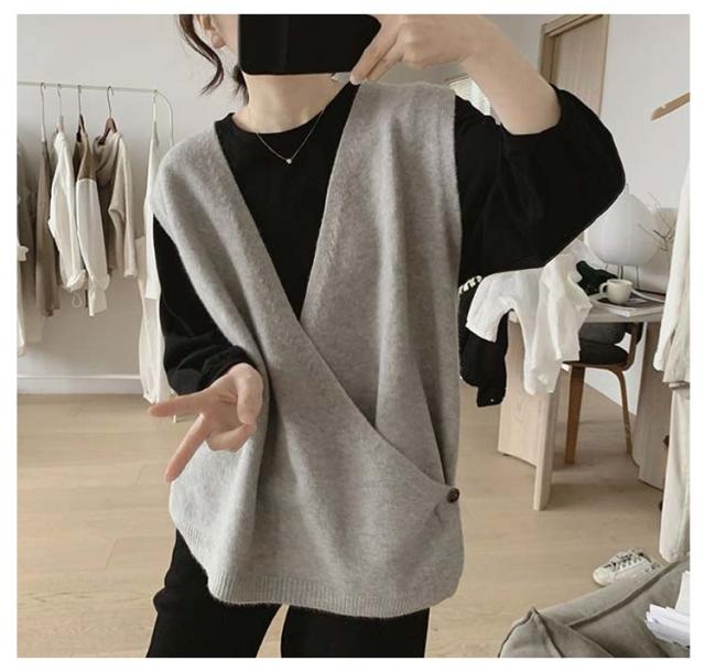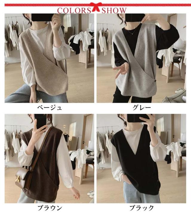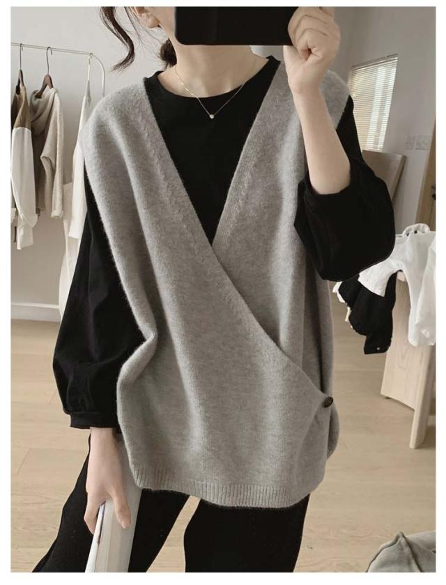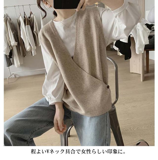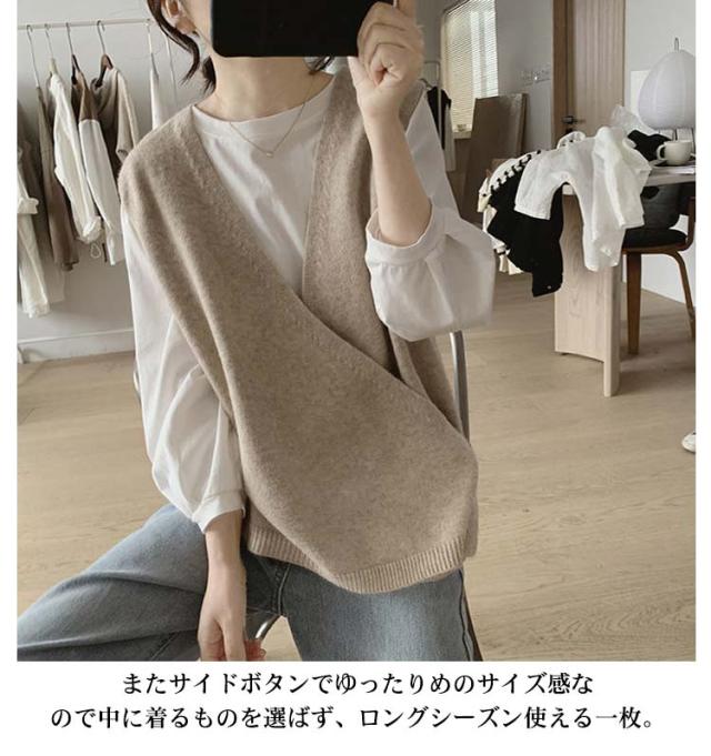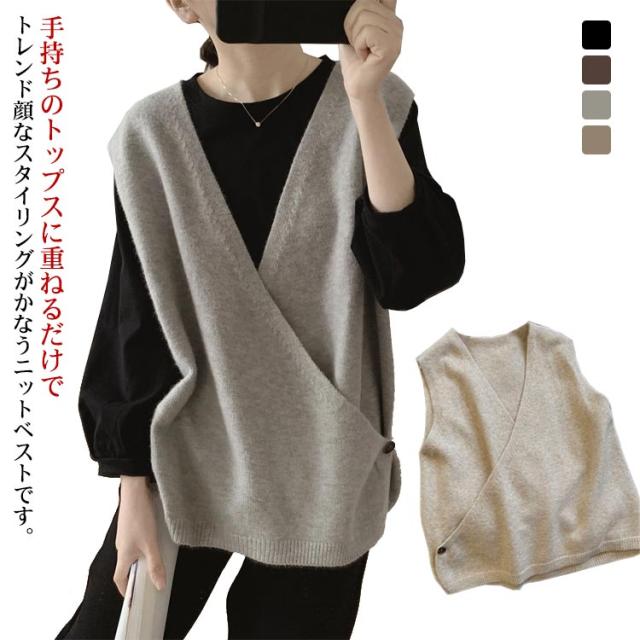 【送料無料】ニットベスト Vネック クロス サイドボタン ベスト レディース ニット プルオーバー ゆったり レイヤード 重ね着 トップス 大人可愛い おしゃれ 20代 30代 40代 50代 薄手 春 秋冬 韓国風 ルーズ カジュアル