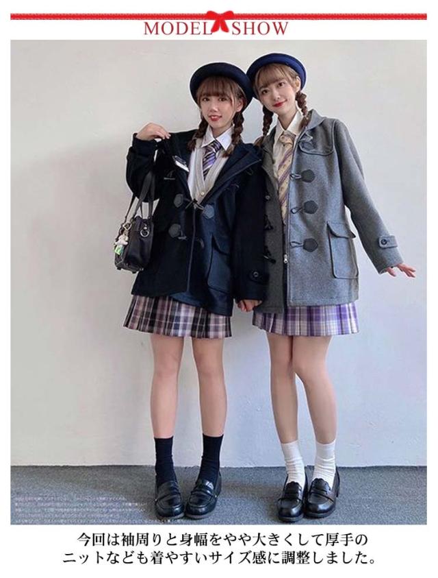 | 温かみのあるスクールコートとしても普段着にも使いやすいダッフルコート! 今回は袖周りと身幅をやや大きくして厚手のニットなども着やすいサイズ感に調整しました。 厚みのある暖かな生地なのに軽くて着やすい素材です。 裏地はキルティングで温かく着ていただけます。 トグルボタンを開けて着た際のすっきりとしたシルエットもポイントです◎ スカートにもパンツにも合わせられる着丈で仕上げており、ONにもOFFスタイルにも長いシーズン活躍できます。 | |