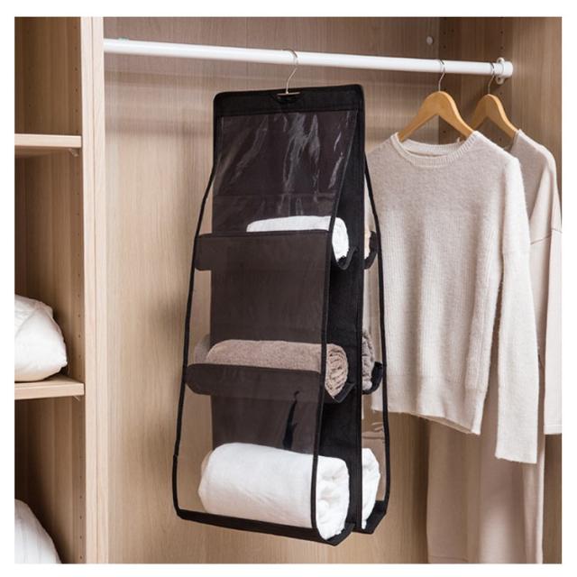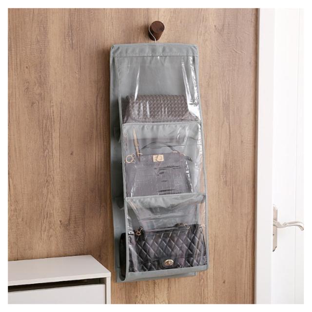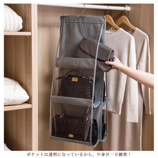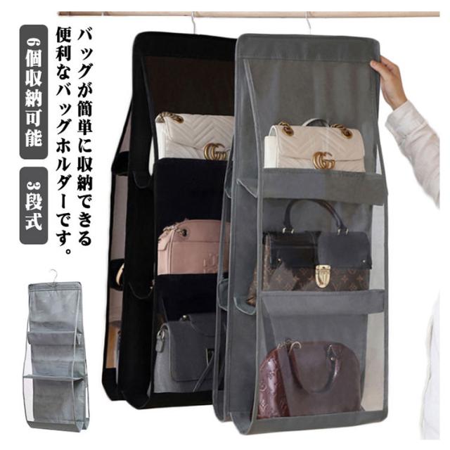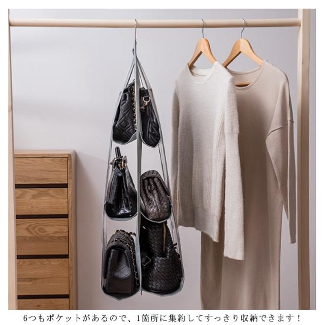 | バッグが簡単に収納できる便利なバッグホルダーです。 クローゼットなどのスペースを有効活用できます。 6つもポケットがあるので、1箇所に集約してすっきり収納できます! ポケットは透明になっているから、中身が一目瞭然! 使いたいバッグをすぐに見つけることができます。 | |