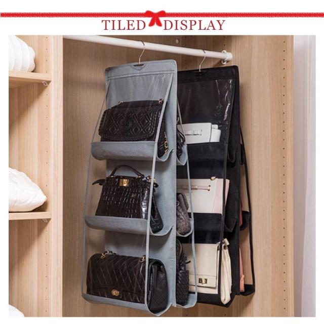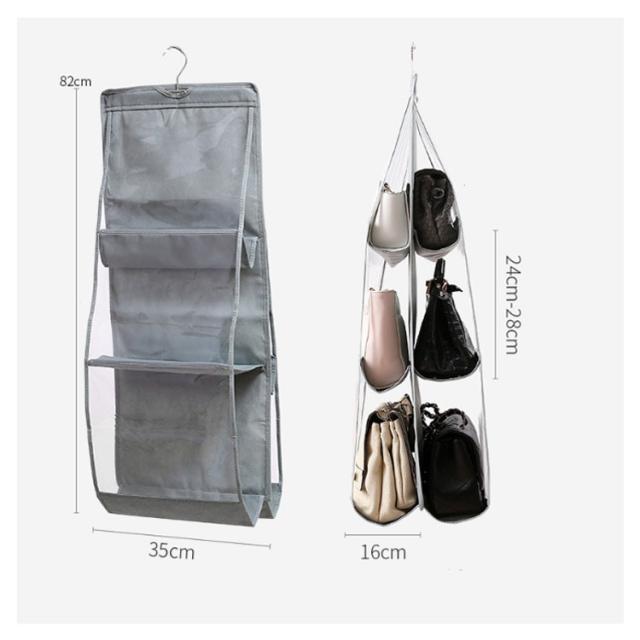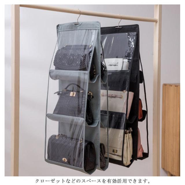 バッグ収納ハンガー 折りたたみ かばん収納ラック カバン収納 吊り下げ 6個収納可能 クローゼット収納 バッグ収納ラック クローゼットにすっきり収納 6ポケット付き 両面収納 省スペース 水洗い可能 3段式 バッグ収納ホルダー 整理 送料無料