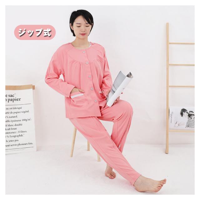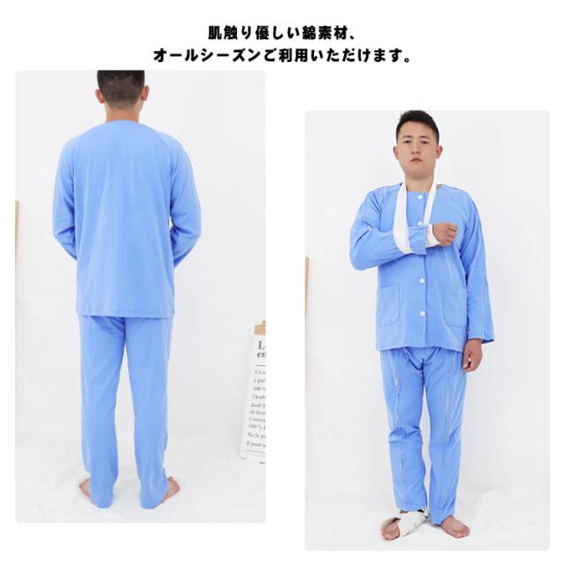 全開 長袖 介護用パジャマ メンズ レディース 綿 介護 パジャマ 入院 在宅介護 上下セット オムツ交換 両開き 春秋夏 無地 シニア 高齢者 失禁 骨折ケア 紳士用 婦人用 診察 検査着 通院 マジックテープ ファスナー ルームウェア 部屋着