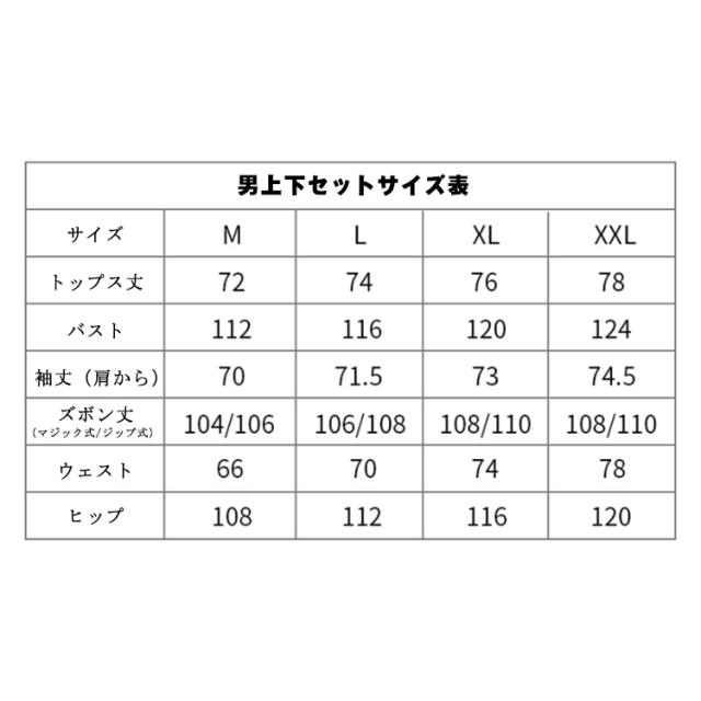 | 色 | 男上下セット/マジック式 女上下セット/マジック式 男上下セット/ジップ式 女上下セット/ジップ式 |