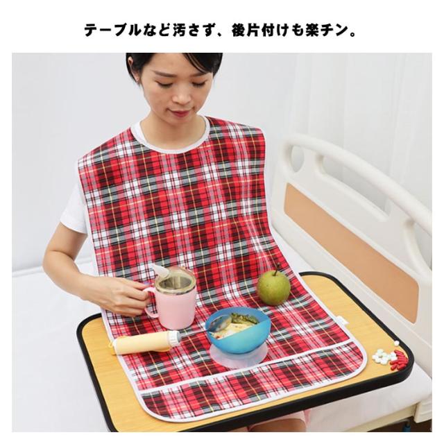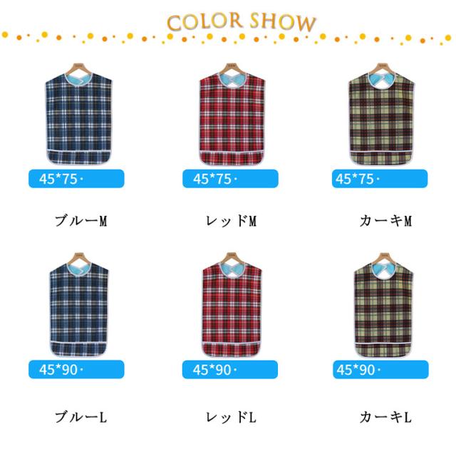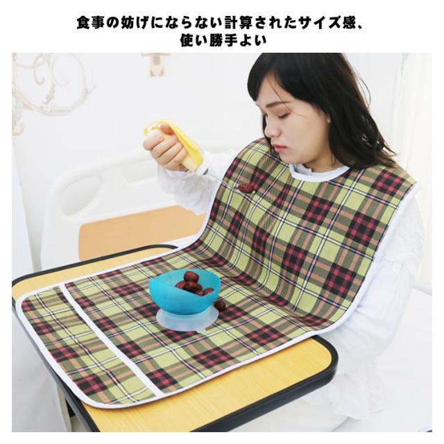 介護用エプロン 45×75cm 45×90cm ポケット付き 高齢者 食事用エプロン 防水 シニア 介助 食べこぼし ロング 送料無料 大人 スタイ よだれかけ 介護エプロン 汚れ 防止 大きいサイズ チェック柄 介護用品 食事用 介護エプロン