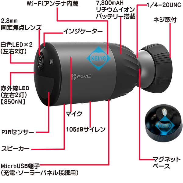 CS-BC1C【32GBメモリ内蔵7,800mAhバッテリー搭載Wi-Fiネットワークカメラ】 SDカード録画 防犯カメラ EZVIZ イージービズ