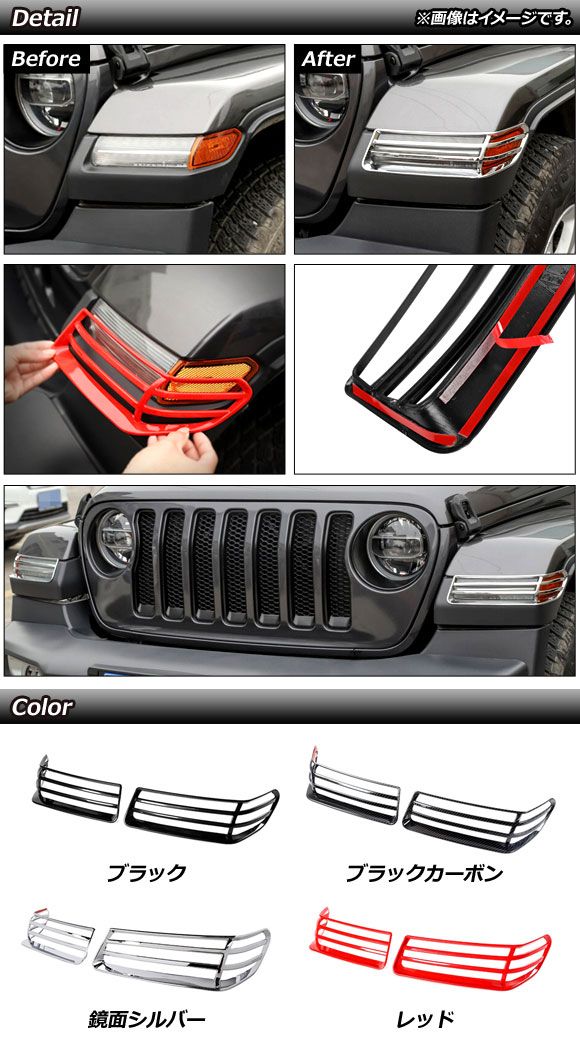 フロントウインカーカバー ジープ ラングラー JL 2018年10月〜 ブラック ABS製 入数:1セット(左右) AP-XT1784-BK