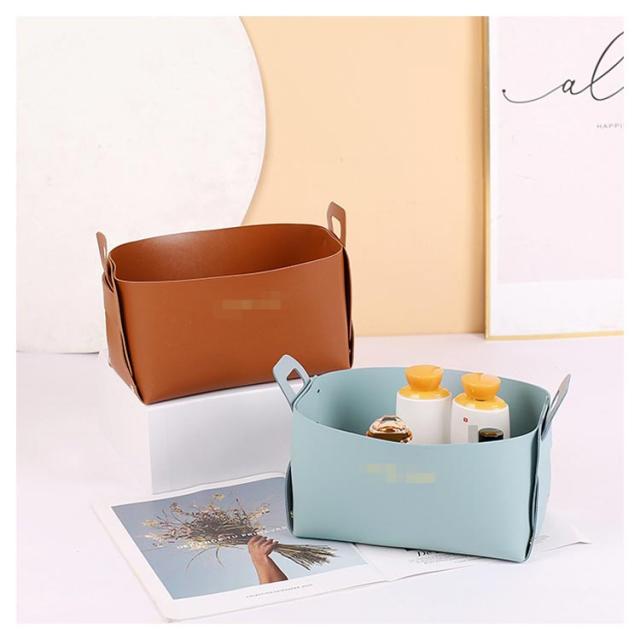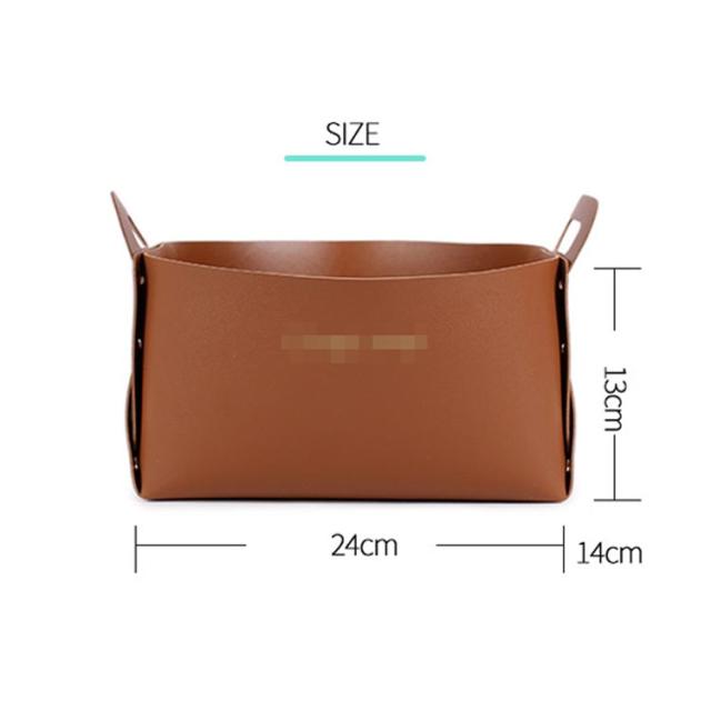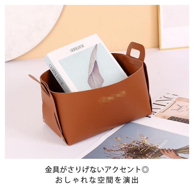 | PUレザーを使用したシンプルなデザインの収納かご。 自宅の机の上、玄関先、寝室、リビングで小物を便利に整理整頓♪ 使わない時は折りたたんで省スペースに収納できます。 化粧品や手紙、リモコンの収納など使い方も色々! シンプルで洗練されたデザインがいつもの見慣れた空間をぐっとおしゃれに◎ | |