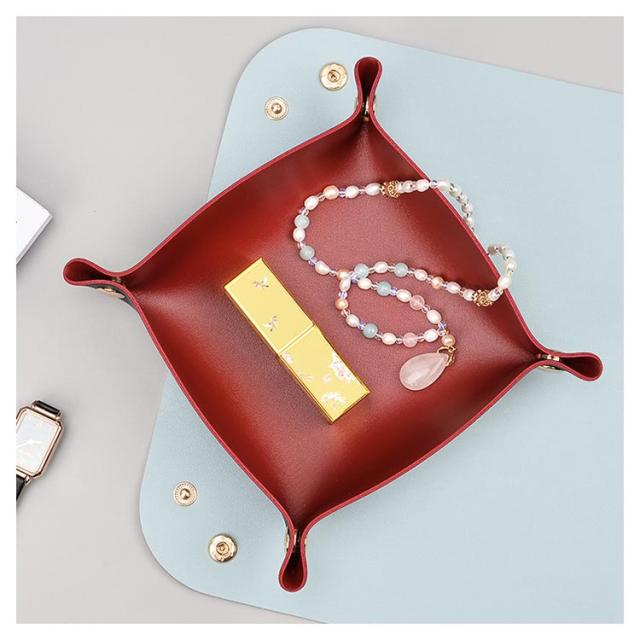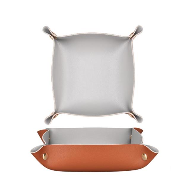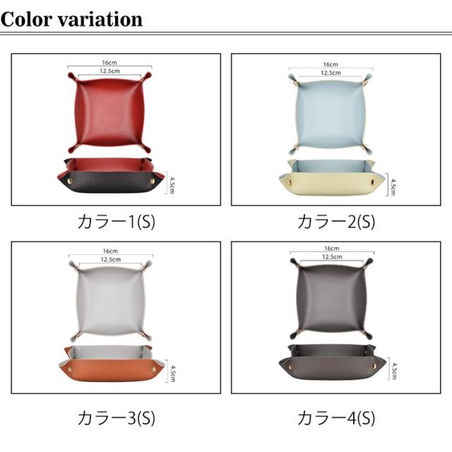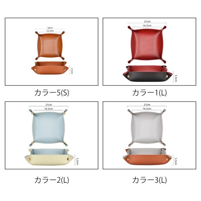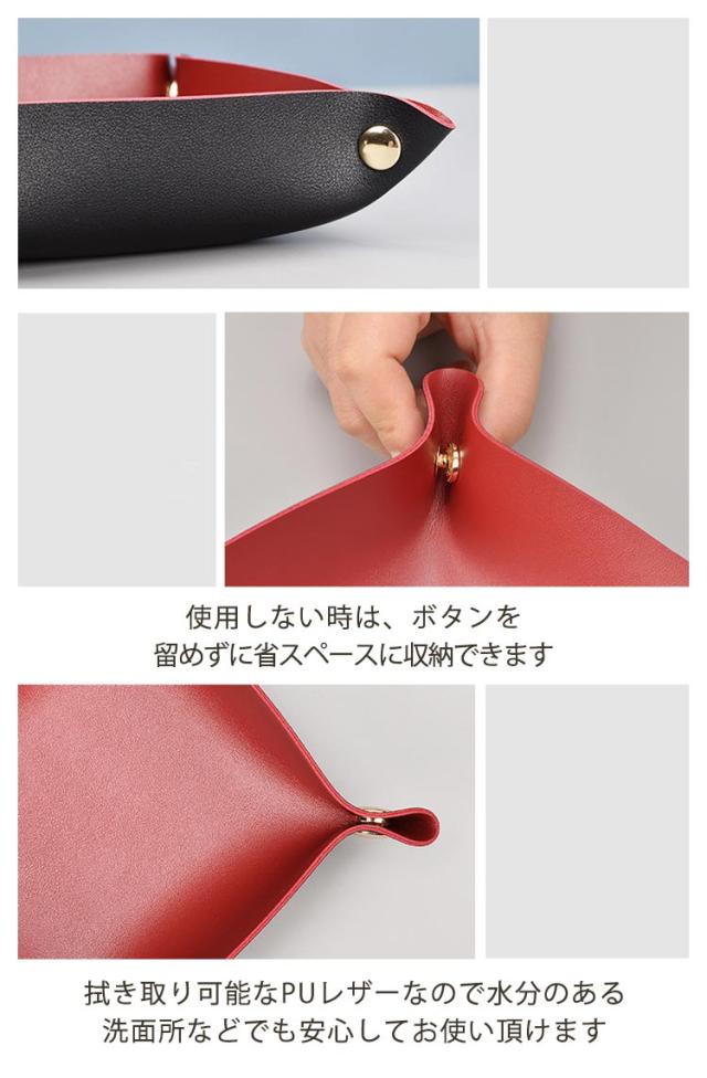 | アクセサリーや鍵などなくしやすい小物のロケーションに。 拭き取り可能なPUレザーなので水分のある洗面所などでも安心してお使い頂けます。 スナップボタンを外せば完全にフラットに。使わない時は、重ねて収納できるので、かさばりません。 カバンに入れて持ち運びも便利なので、旅行先でも大活躍。 シンプルなデザインとおしゃれな色合いが幅広いお部屋にマッチし、ご自宅用はもちろん、プレゼントにもおすすめです! | |