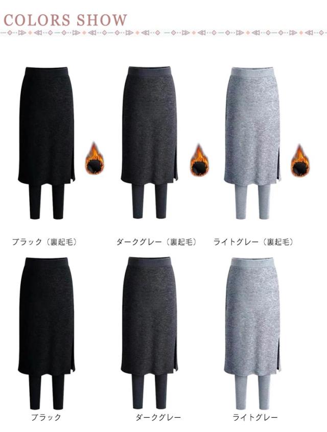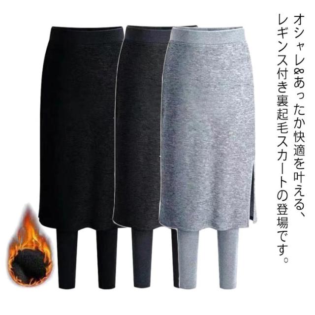 スカート付きレギンス レディース 裏起毛 レギンス付き スカート タイトスカート レギンス レギパン レギンスパンツ ペンシルスカート スリット スカート 秋冬 ミモレ丈 送料無料
