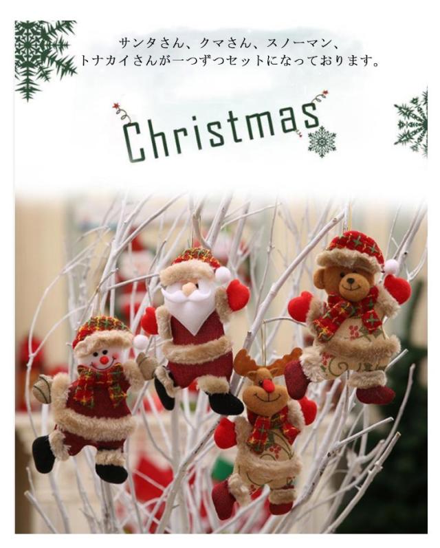 クリスマスグッズ ぬいぐるみ 4個入 クリスマス オーナメント 送料無料 人形 ツリー 飾り サンタクロース 雪だるま トナカイ くま パーティー 装飾品 デコレーション 定番 人形 文化祭 部活 パーティー用