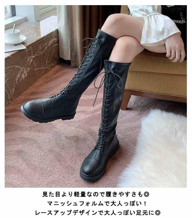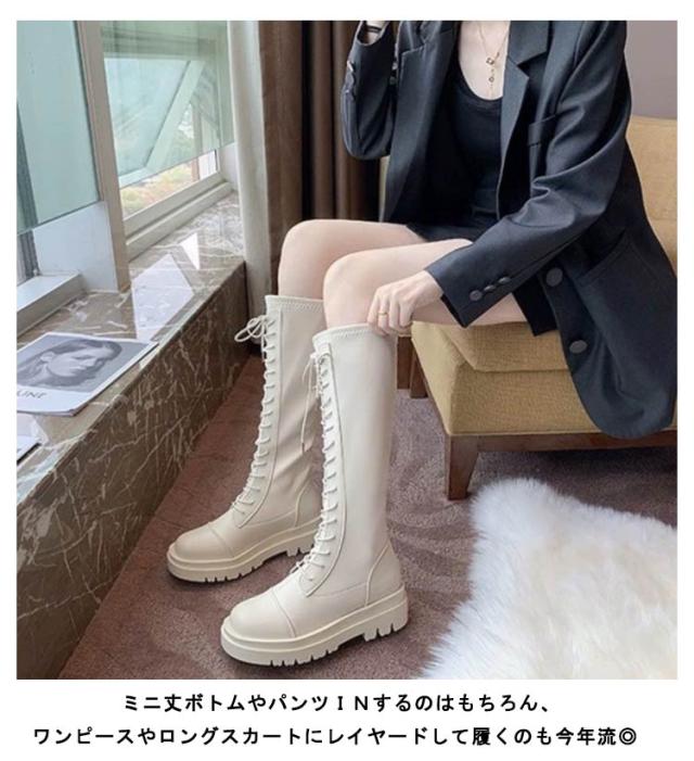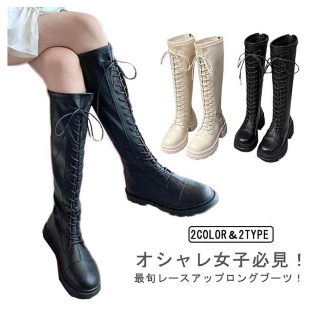 | オシャレ女子必見!最旬レースアップロングブーツ! レースアップブーツは履くだけでワンランク上のスタイルに仕上がります。 見た目より軽量なので履きやすさも◎ マニッシュフォルムで大人っぽい! レースアップデザインで大人っぽい足元に◎ バックにはフルジップを採用しているので、ファスナーでスムーズな着脱も可能です。 筒部分の裏側からつま先まであったか裏起毛タイプあります。 ミニ丈ボトムやパンツINするのはもちろん、ワンピースやロングスカートにレイヤードして履くのも今年流◎ 韓国ファッションやストリートコーデにもオススメです。 | |