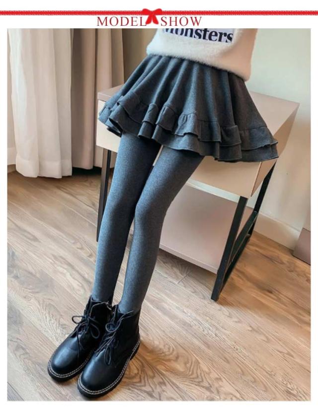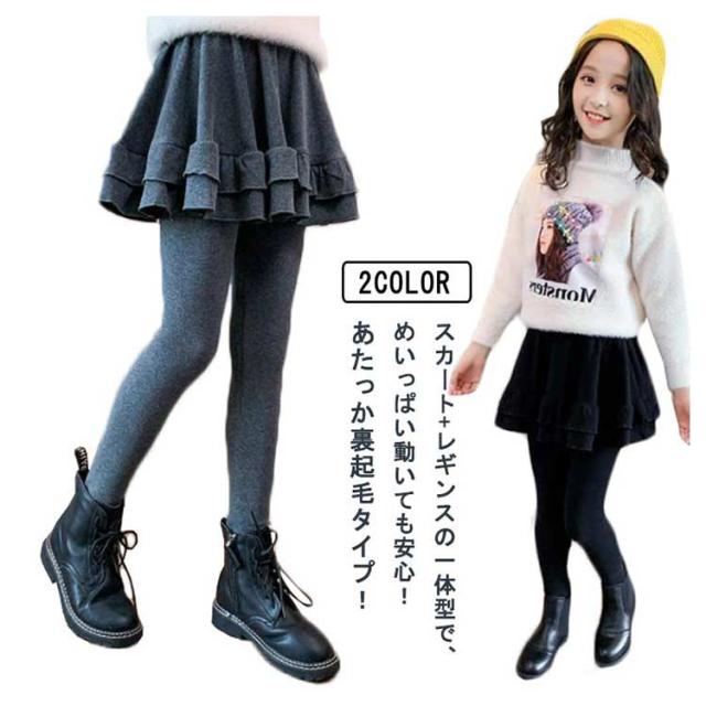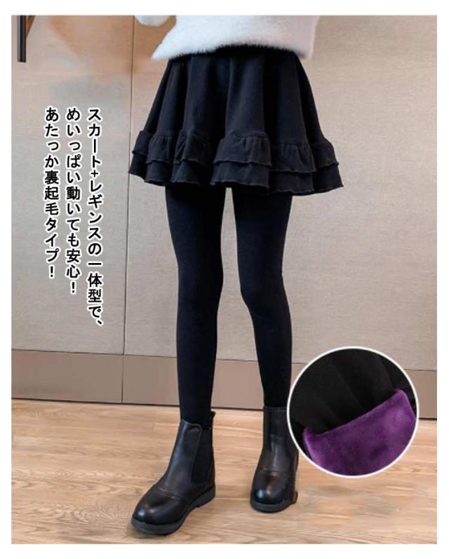 キッズ スカート付きレギンス 裏起毛 厚手 レギンス スカート付き ストレンチ フレア Aライン スカート 一体型 子供服 女の子 秋冬 防寒 保温 あたっか 100 110 120 130 140 150 160 可愛い 無地 通学 学生 【送料無料】