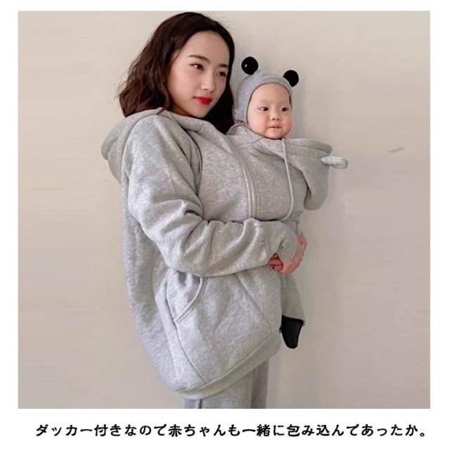 マタニティ パーカー ママコート ダッカー付き マタニティウェア 授乳服 抱っこ ママコート おんぶコート 抱っこ紐パーカー フード付き 裏起毛 あったか 産前 産後 防寒 秋冬 可愛い シンプル 多機能 大きいサイズ パパも使える