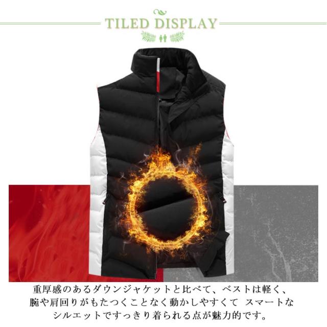 | 両サイドポケット付き、日常のスマホや鍵などを入れることができますのですごく便利です。 表地にはハリのあるポリエステル素材を採用。中にはたっぷりと中綿を入れることでボリューム感と暖かさをプラス。それでいて軽量なので、気軽に羽織ることができます。 防寒性とファッション性を兼ね備え、カジュアルさがアップ。 重厚感のあるダウンジャケットと比べて、ベストは軽く、 腕や肩回りがもたつくことなく動かしやすくて スマートなシルエットですっきり着られる点が魅力的です。 ゴルフをはじめ、ウオーキング、登山、撮影、釣り、フィッシング、作業、キャンプ、遠足 、旅行などの幅広いなどのシーンで利用することができます。機能性にもしっかりこだわった一枚に仕上げています。 | |